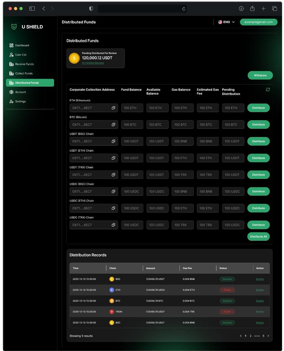 Implements a one-click collection feature through smart contracts, automatically consolidating user funds into the enterprise-level address, making the process simple and secure.